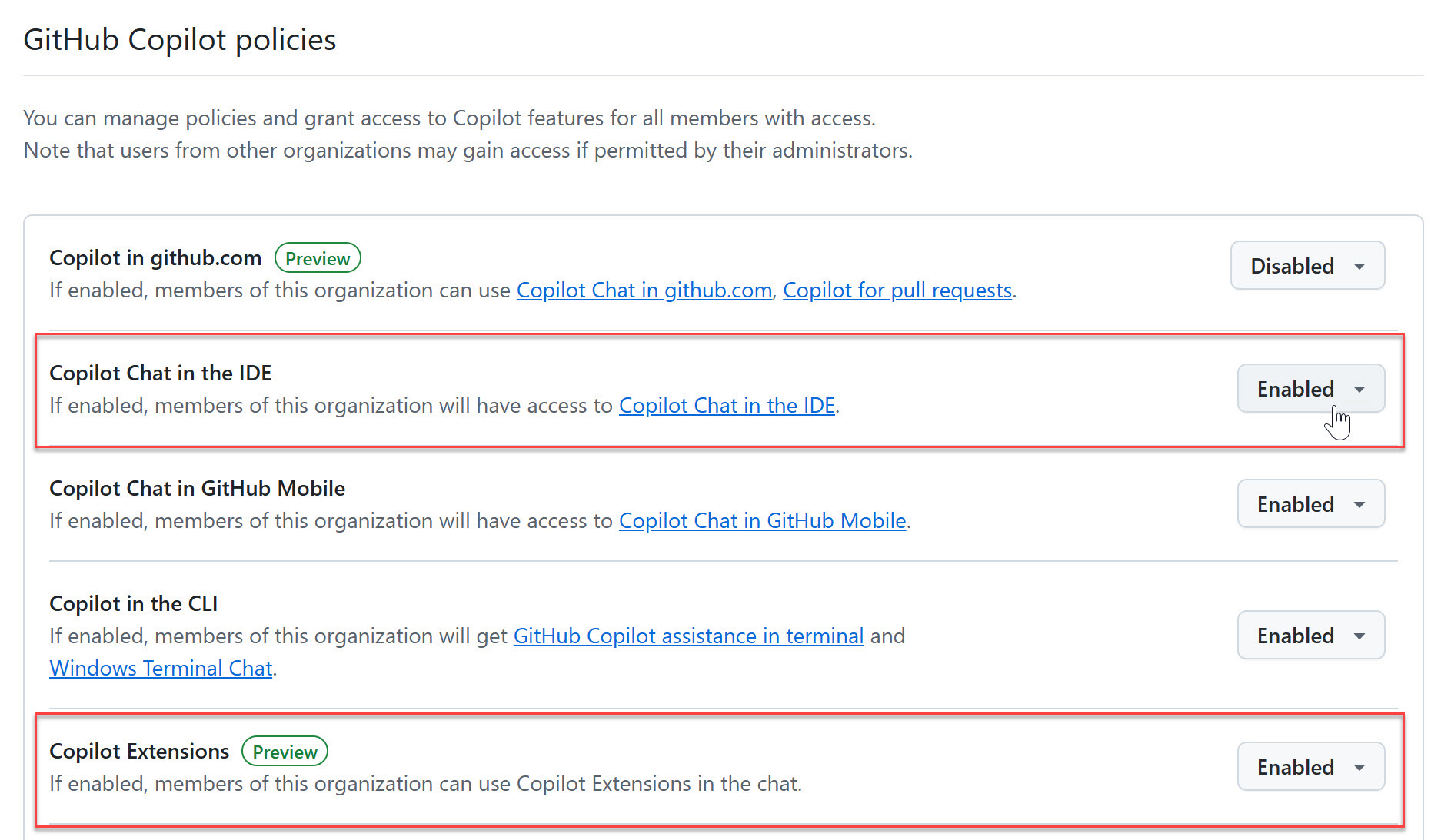 v17.8.0之後的版本需安裝 GitHub Copilot Completions 與 GitHub Copilot Chat 擴充套件,詳見 Get GitHub Copilot for Visual Studio 2022 versions 17.8 to 17.9。 - 若為